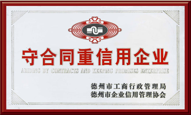 通過不懈的努力,公司多次榮獲市縣級“先進單位”、“守合同重信用企業(yè)”、“文明誠信民營企業(yè)”、“金星企業(yè)”,并連續(xù)五年被銀行評為“AAA級信用單位”。產品獲了“中國優(yōu)質產品”、“德州市知名商標”等榮譽稱號。